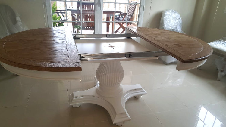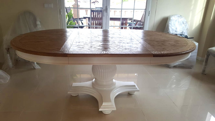 El roble cuenta con una amplia gama de colores. Se emplea principalmente para interiores tradicionales y rústicos por su gran dureza. El acabado final de una mesa de roble puede ser muy variado y se le pueden aplicar tratamientos de envejecimiento para darle mayor riqueza y estilo.